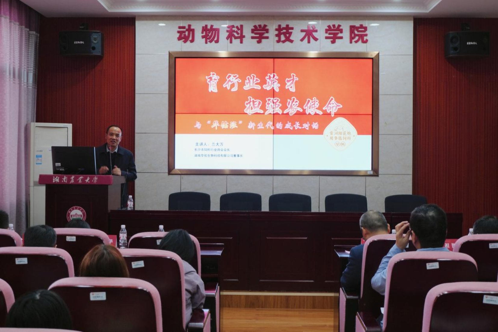 10月23日,动物科学技术学院在第二教学楼501会议室举行湖南农业大学第一届“华佑班”成立仪式。湖南华佑生物科技有限公司董事长兰大万、运营副总彭禾华、厂长林荣卫等企业代表,湖南农业大学动物科学技术学院院长贺喜、党委书记祖智波等学院领导班子成员、部分专任教师代表、辅导员代表出席成立仪式。