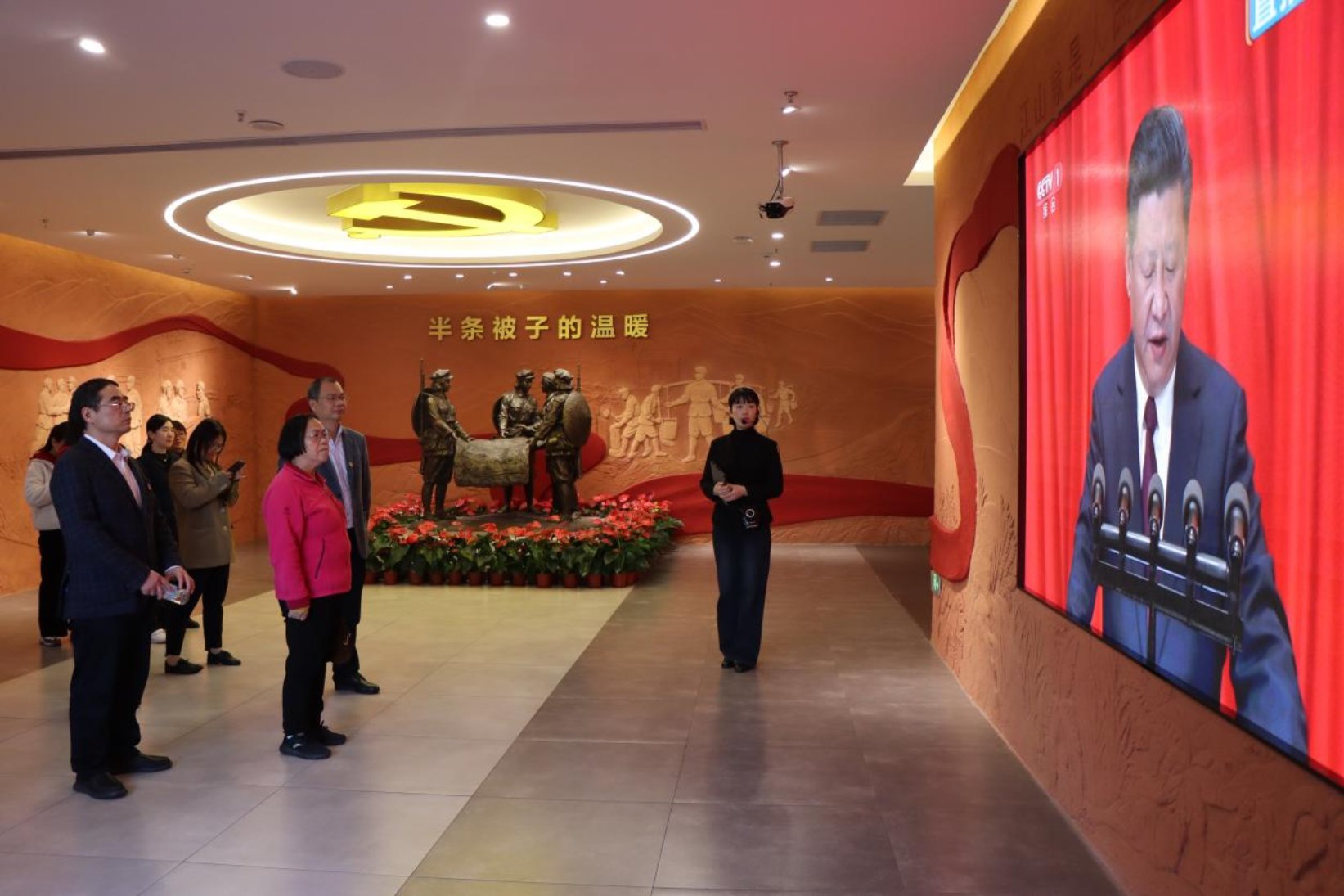 随后,党员们跟随讲解员走进“半条被子”专题陈列馆,重温了习近平总书记在纪念红军长征胜利80周年大会上讲述“半条被子”故事的视频讲话。深入了解故事背后的军民鱼水情,馆内陈列的一件件历史实物、一幅幅生动图片,让党员们深刻感悟革命先辈与人民群众同甘共苦、生死与共的深厚情谊,进一步坚定了践行全心全意为人民服务宗旨的信念。