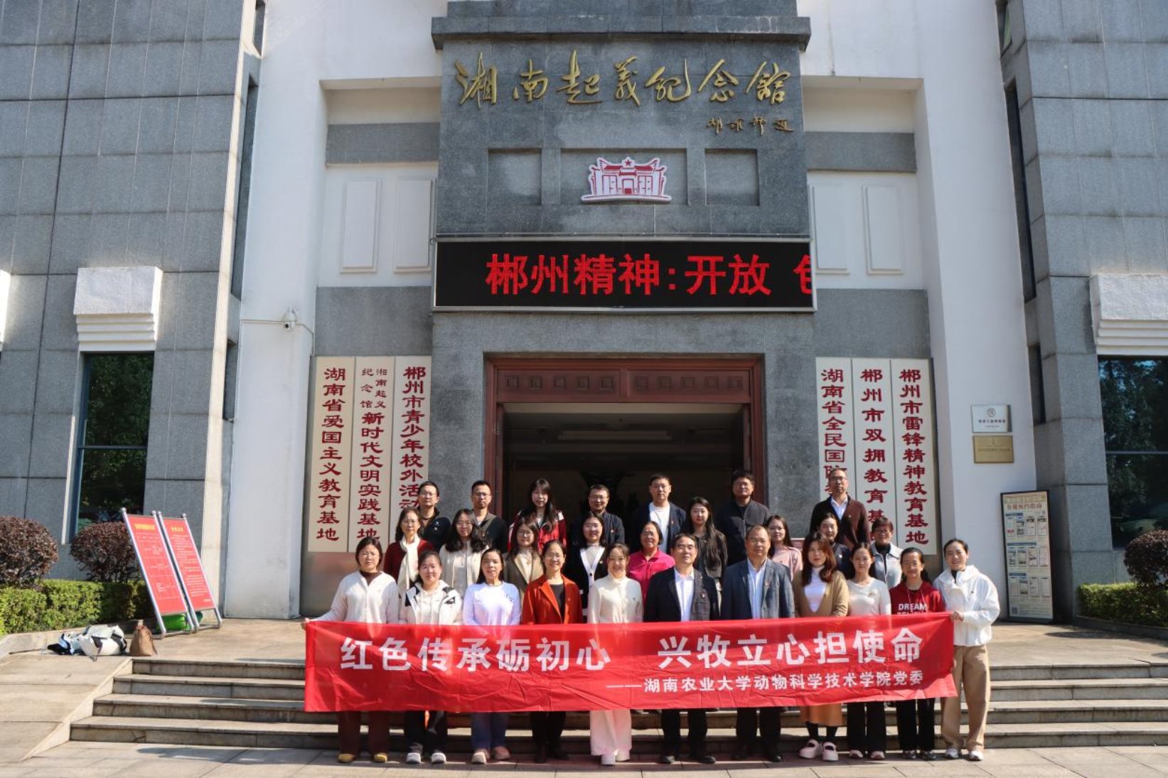 为筑牢党员思想根基,进一步提升党组织的凝聚力,11月14日至15日,动物科学技术学院党委组织党员代表赴郴州汝城县开展“红色传承砺初心,兴牧立心担使命”主题党日活动。本次活动由学院党委书记祖智波带队,院长贺喜、正处级专职组织员徐琳等20余位党员代表参加本次活动。