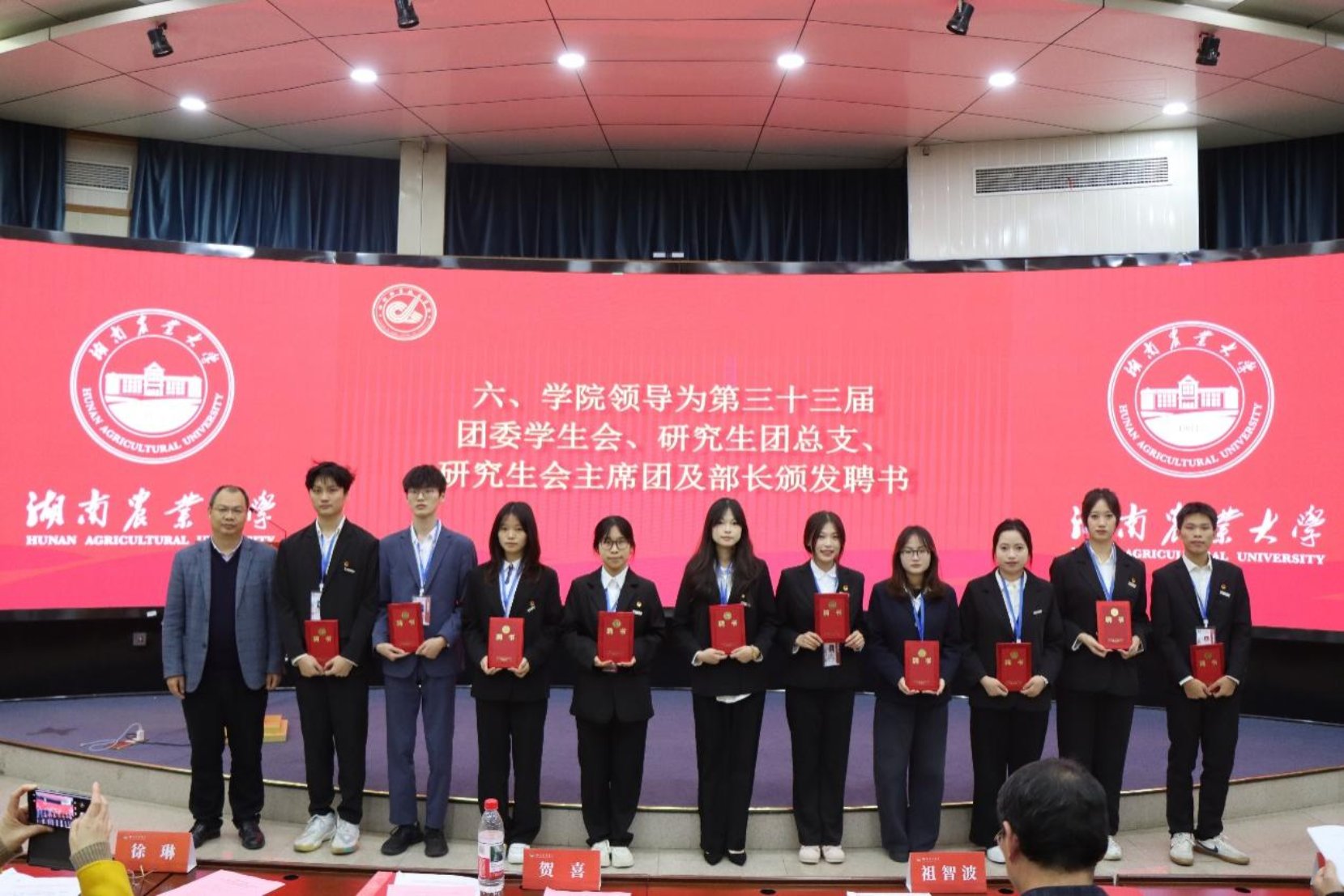 祖智波宣读第三十三届团委学生会、研究生团总支、研究生会成员名单。在现场与会人员见证下,学院领导为团委学生会新一届成员颁发聘书,标志着新一批骨干正式接过责任接力棒。