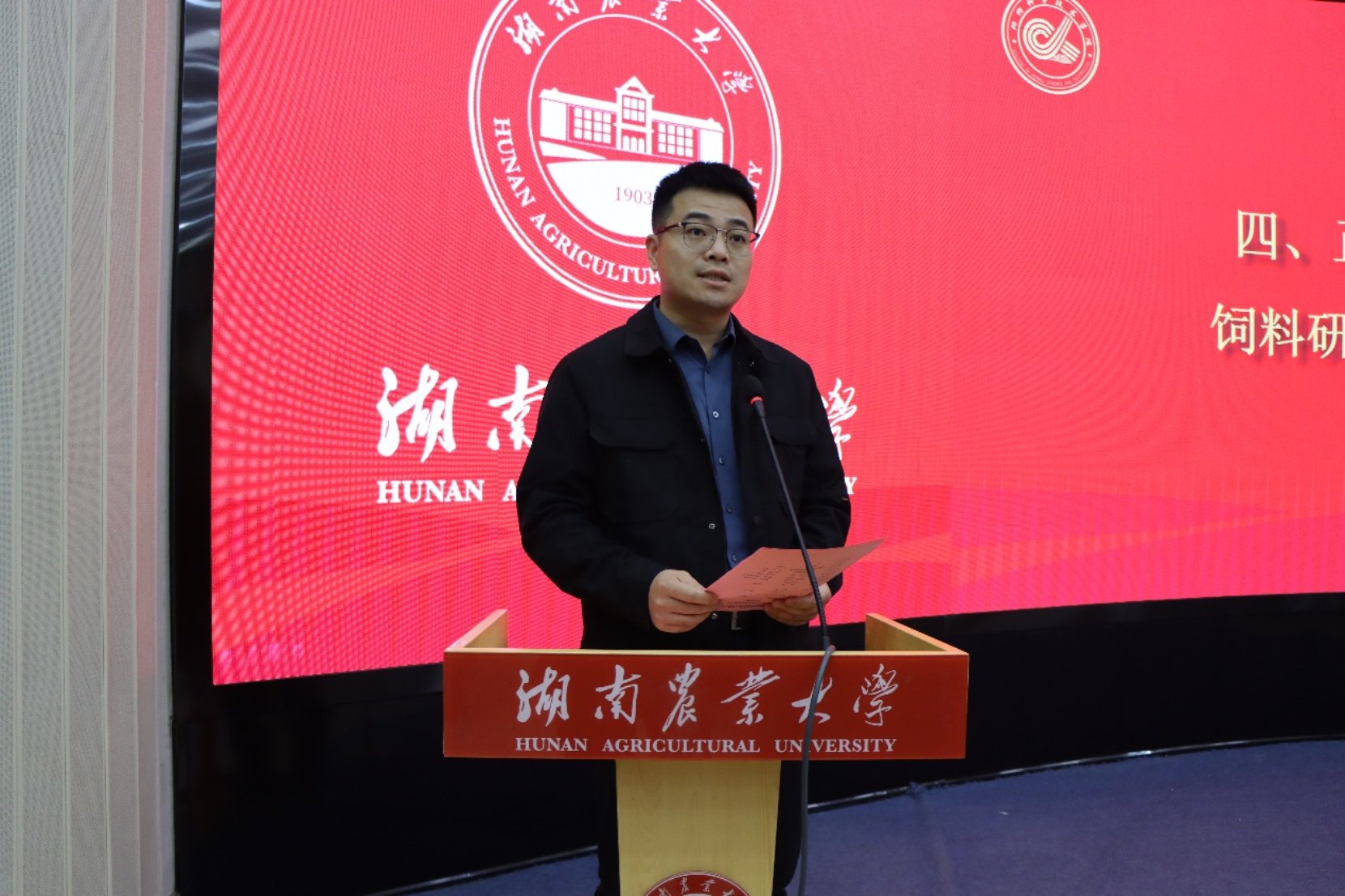 贺喜代表学院发言。他向获奖师生表示祝贺,对一直以来关心支持学院、学生发展的相关企业表示衷心的感谢。他强调了动物科学专业的民生价值,指出行业正朝着机械化、智能化方向转型,对人才的知识结构与创新能力提出了更高要求,鼓励学生扎根行业、持续学习。他指出,学院的办学宗旨是为畜牧行业培养专业人才,期望广大动科学子能够投身行业,通过产教融合促进学生成长,推动行业持续发展。
