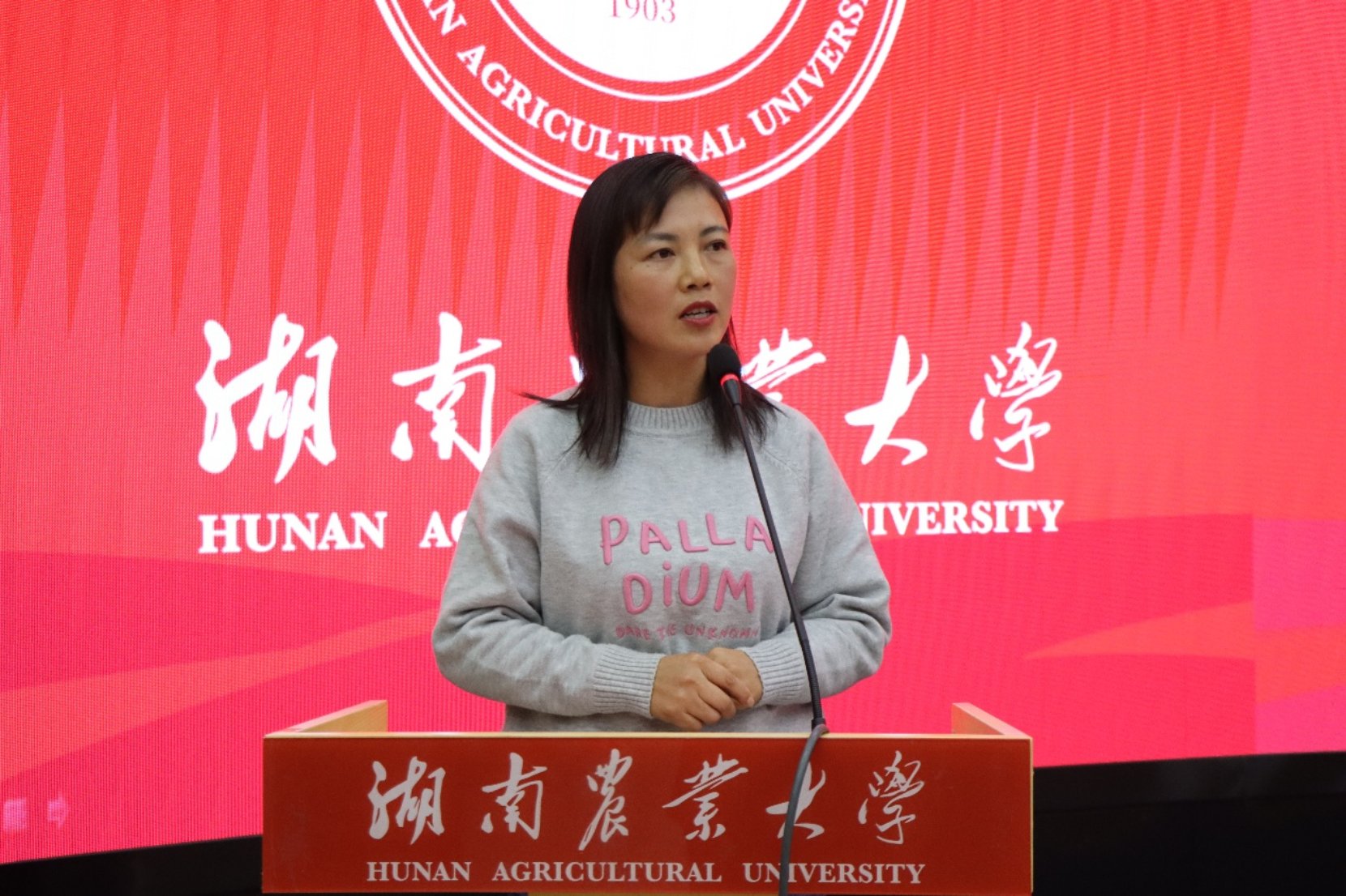 曾明辉代表普菲克集团发言。他阐述了公司“共创共享”的人才理念,并热情欢迎农大学生前往参观交流。他表示,普菲克将持续推进校企合作,敞开怀抱吸纳专业人才,与学弟学妹共同成长。