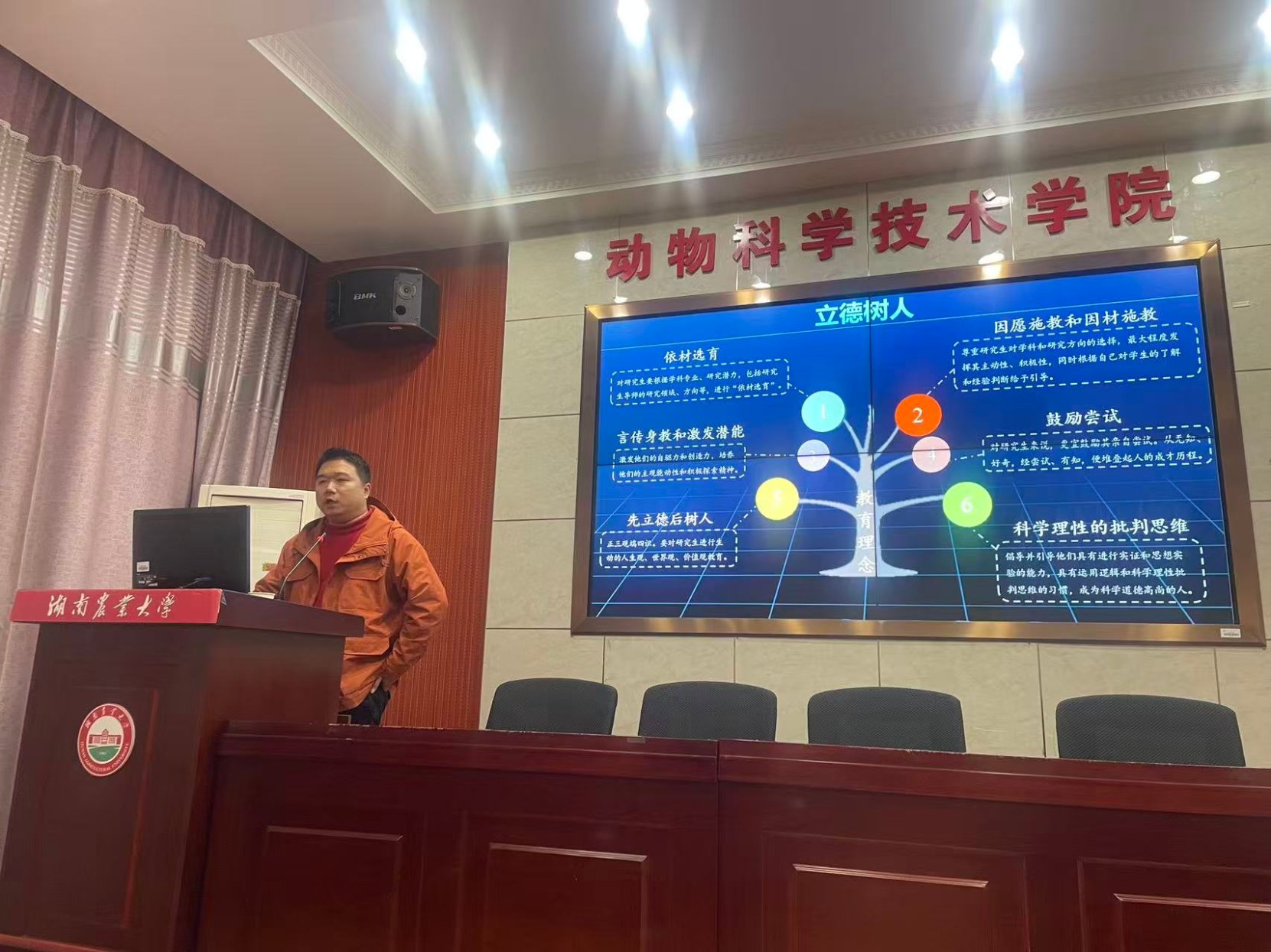 2025年12月24日,由湖南农业大学动物科学技术学院、图书馆及岳麓山实验室畜禽品种创制中心联合主办的学术活动在第二教学楼501会议室举行,特邀西北农林科技大学蓝贤勇教授、三峡大学刘湘教授作专题报告,动科学院副院长范志勇、水产学院副院长李军华和师生80余人参加了此次活动。
