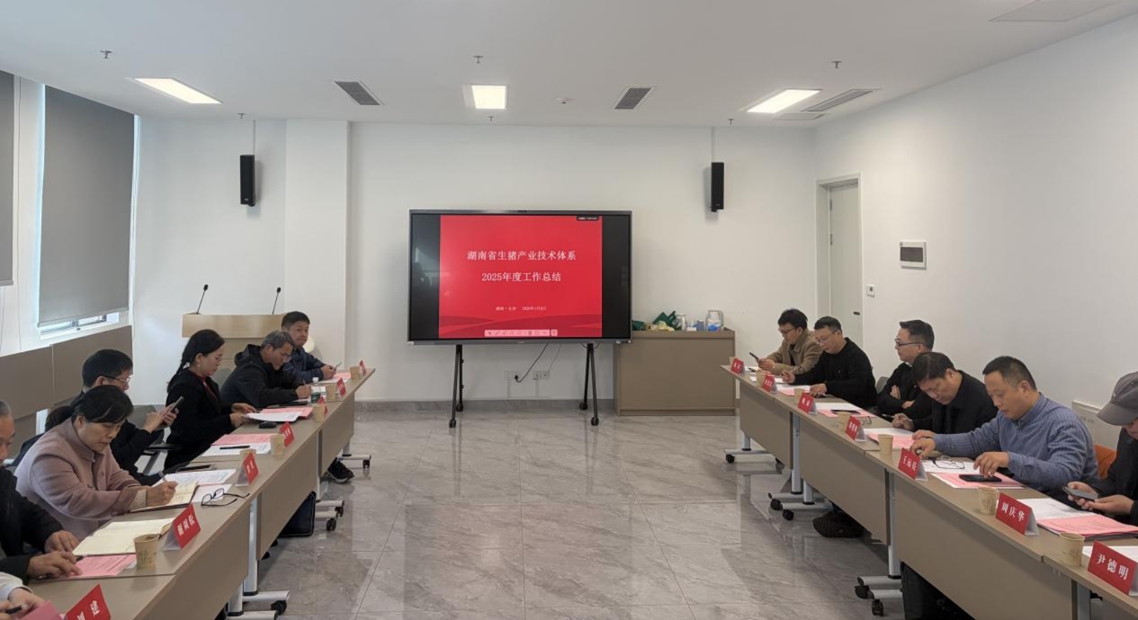 1月9日,湖南省生猪产业技术体系在岳麓山实验室召开2025年度工作总结暨年度考评会议。省农业农村厅科技教育处副处长龙雷鸣、四级调研员邓享棋,湖南农业大学科技处处长匡勇、动物科学技术学院院长贺喜及体系全体岗站专家参加。特邀国家生猪产业技术体系湘潭综合试验站站长周庆华、株洲综合试验站站长尹德明组成咨询专家组和考核组。体系首席专家黄兴国教授主持会议。
