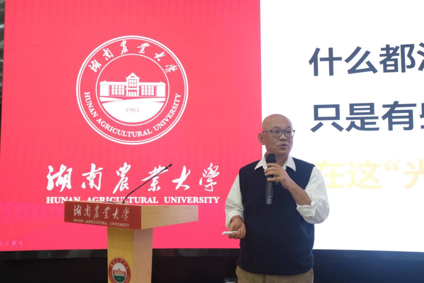 4月22日,“两农一体”动物科学学科联合体“兴牧立心”讲堂在生命科学楼国际会议厅举行第一期活动。本次活动特邀扬胜营养创始人、湖南农业大学1980级本科畜牧班校友朱锦前博士、深圳扬胜营养总经理朱宇翔先生联袂主讲,校党委委员、副校长谢方平、创新创业与就业指导处处长张胜利、校友事务与发展联络办公室主任彭可为、动物科学技术学院院长贺喜、党委书记祖智波、党委副书记周军铁、全体辅导员及学生代表共120多人参加活动。活动由院长贺喜主持。