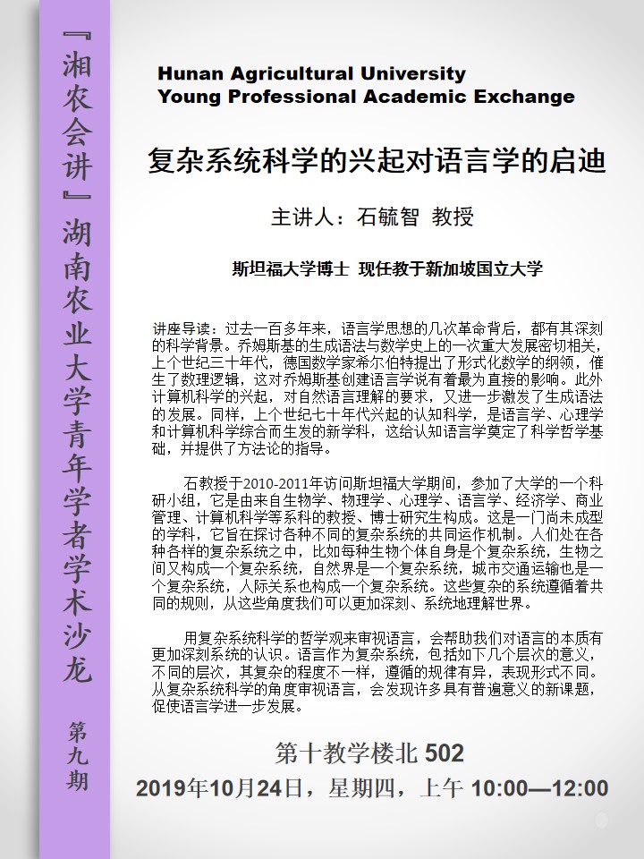 湖南农业大学青年学者学术沙龙第九期--复杂系统科学的兴起对语言学的启迪