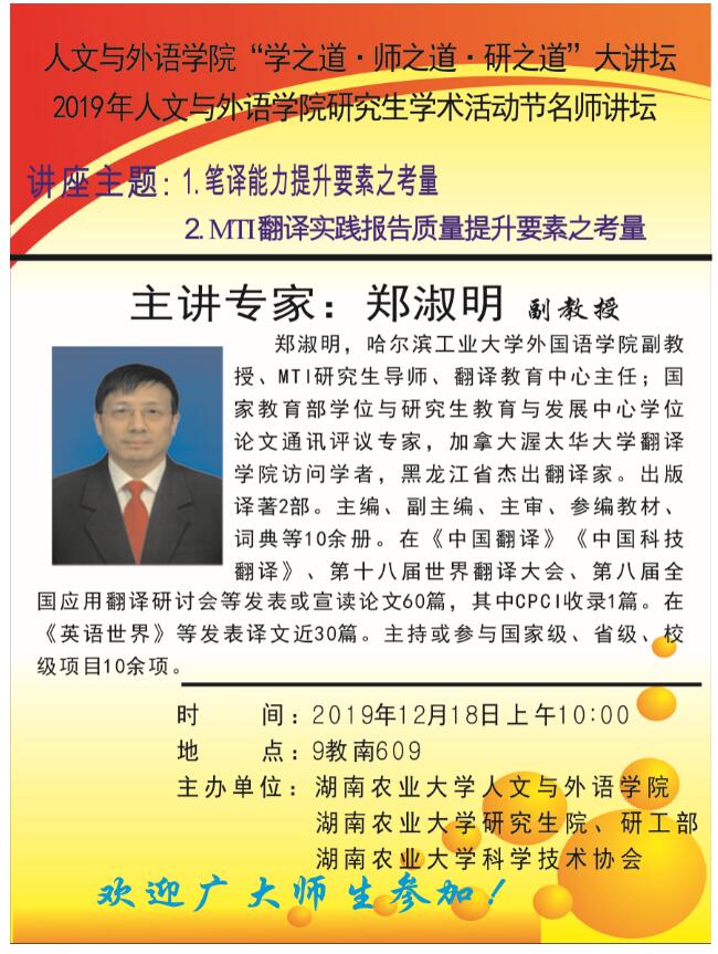 人文与外语学院“学之道 师之道 研之道”大讲坛