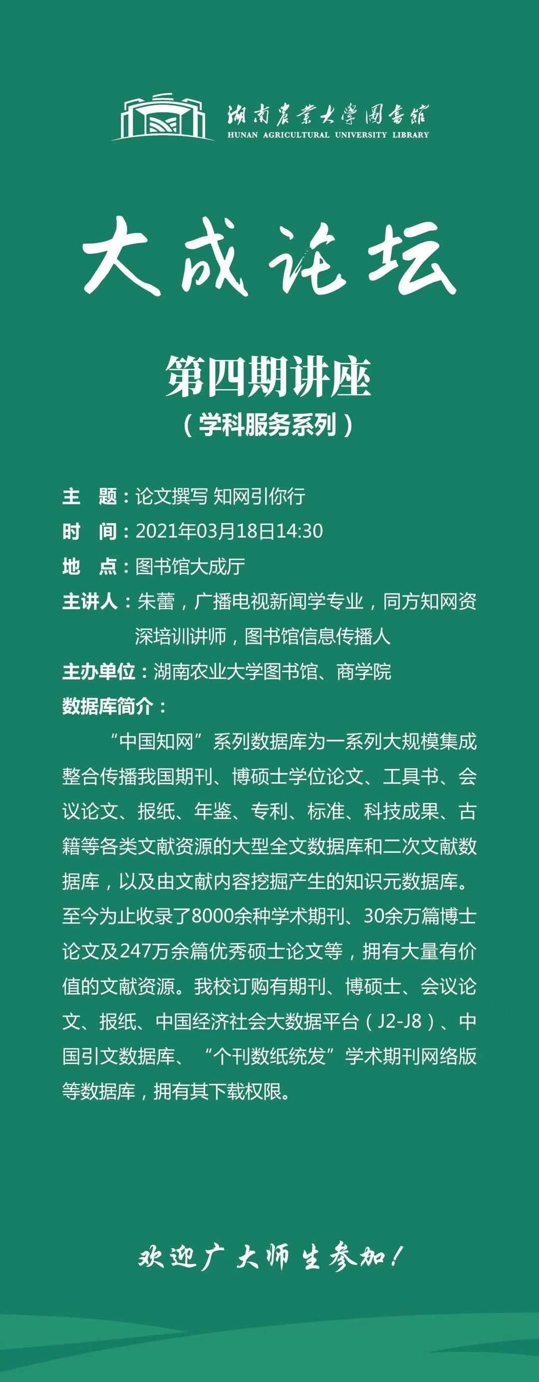 “大成论坛”第四期讲座:论文撰写 知网引你行