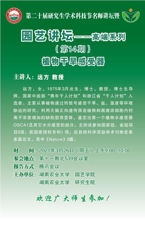 园艺讲坛--高端系列(第14期) 植物干旱感受器