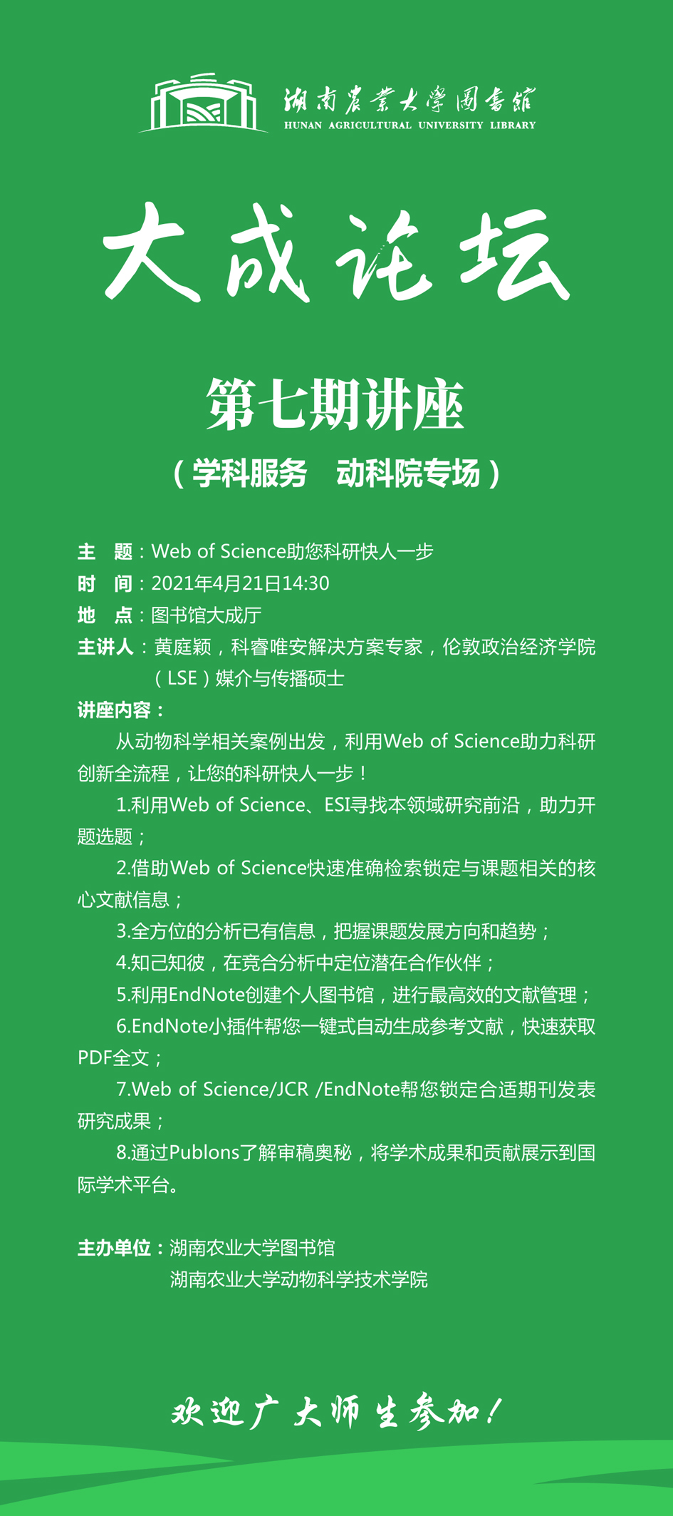 “大成论坛”第七期:Web of Science助您科研快人一步